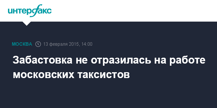 Москва. 13 февраля. INTERFAX.RU - Несмотря на забастовку, количество машин московского такси, выполняющих заказы в пятницу, соответствует обычному уровню - на работу не вышло всего 15-50 таксистов, сообщили в пресс-службе столичного департамента транспорта и развития дорожно-транспортной инфраструктуры.