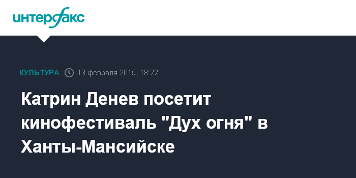 Москва. 13 февраля. INTERFAX.RU - Французская актриса Катрин Денев примет участие в официальной церемонии открытия XIII Международного фестиваля кинематографических дебютов "Дух огня" в Ханты-Мансийске.