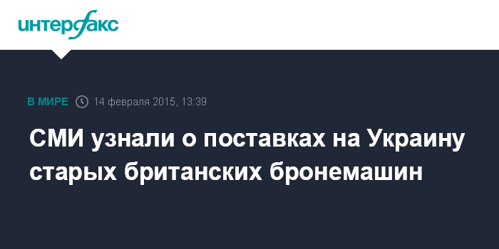 Издание цитирует представителя министерства, который сообщил, что броневики, которые использовались в британской армии в 1980-х годах и были списаны три года назад, отправлены на Украину без вооружения по частному контракту, подписанному еще в 2013 году.