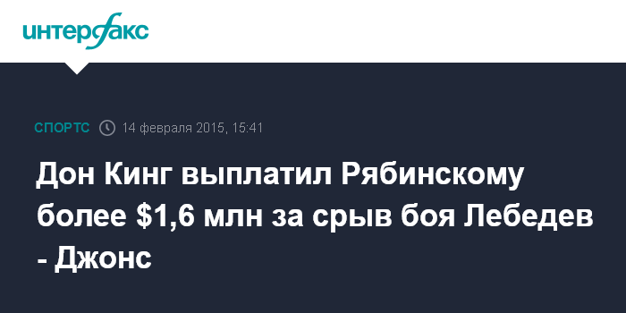 Дон Кинг выплатил Рябинскому более $1,6 млн за срыв боя Лебедев - Джонс