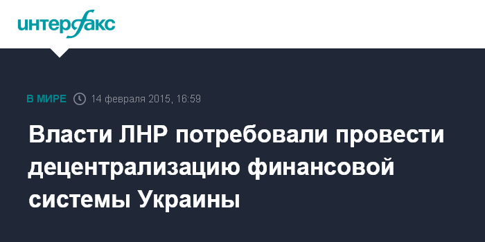 Власти ЛНР потребовали провести децентрализацию финансовой системы Украины