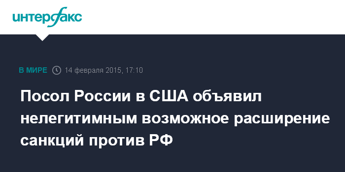 Посол России в США объявил нелегитимным возможное расширение санкций против РФ