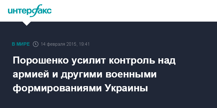 Москва. 14 февраля. INTERFAX.RU - Президент Петр Порошенко подписал указ "Об усилении контроля над деятельностью Вооруженных сил Украины и других воинских формирований", а также утвердил положение, которым определяется порядок осуществления контроля президента в этой сфере.