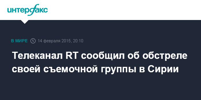 Москва. 14 февраля. INTERFAX.RU - Съемочная группа Russia Today попала под обстрел в Сирии, сообщает телеканал.