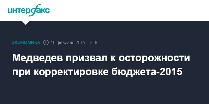 Москва. 16 февраля. INTERFAX.RU - Премьер-министр РФ Дмитрий Медведев призвал правительство быть осторожным при переработке бюджета на 2015 год и не рассчитывать на благоприятные прогнозы.