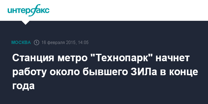 Москва. 16 февраля. INTERFAX.RU - Станцию метро "Технопарк" Замоскворецкой линии метрополитена планируется сдать к концу 2015 года, сообщил журналистам в понедельник руководитель департамента строительства Москвы Андрей Бочкарев