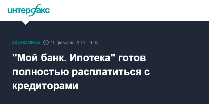 "Мой банк. Ипотека" готов полностью расплатиться с кредиторами