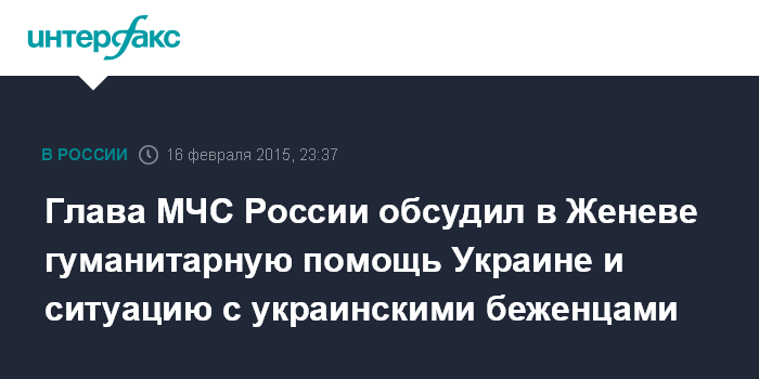 Москва. 16 февраля. INTERFAX.RU - Глава МЧС России Владимир Пучков и руководители гуманитарных организаций в ходе встреч в Женеве основное внимание уделили кризису на юго-востоке Украины и вопросам оказания помощи пострадавшему населению.