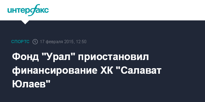 Фонд "Урал" приостановил финансирование ХК "Салават Юлаев"