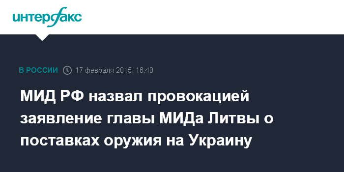 Москва. 17 февраля. INTERFAX.RU - Российский МИД осудил и назвал провокацией признание министра иностранных дел Литвы Линаса Линкявичуса о поставках на Украину летального оружия.