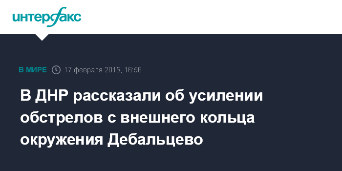 Москва. 17 февраля. INTERFAX.RU - В Минобороны самопровозглашенной Донецкой народной республики заявили об обострении военной обстановки в Дебальцево.