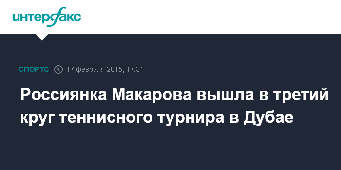 Москва. 17 февраля. INTERFAX.RU - Российская теннисистка Екатерина Макарова завоевала путевку в третий круг турнира WTA Dubai Duty Free Tennis Championships в Дубае.