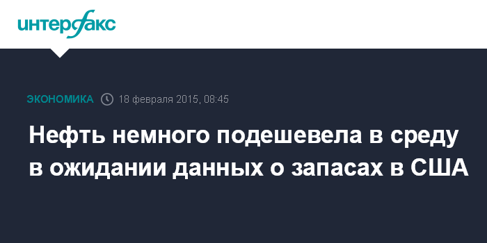 Москва. 18 февраля. INTERFAX.RU – Нефть слабо дешевеет в среду в ожидании данных о запасах в США, сообщает агентство Bloomberg.