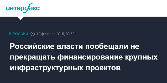 Российские власти пообещали не прекращать финансирование крупных инфраструктурных проектов