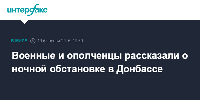 В штабе фронта Новороссии "Интерфаксу" сообщили, что ночь в ДНР и ЛНР прошла спокойно за исключением района Дебальцево.