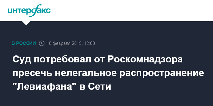Суд потребовал от Роскомнадзора пресечь нелегальное распространение "Левиафана" в Сети