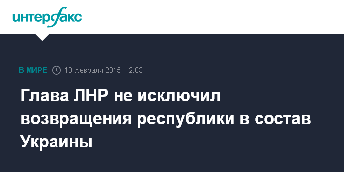 Москва. 18 февраля. INTERFAX.RU - Глава самопровозглашенной Луганской народной республики Игорь Плотницкий не исключил возвращение ЛНР в состав Украины после проведения киевскими властями реформ, которые указаны в минском протоколе от 12 февраля.