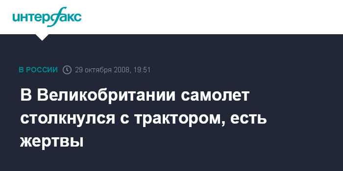В Великобритании самолет столкнулся с трактором, есть жертвы