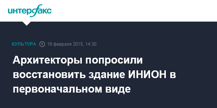 Москва. 18 февраля. INTERFAX.RU - Ведущие российские архитекторы, реставраторы, искусствоведы и специалисты в области охраны культурного наследия обратились к председателю правительства РФ Дмитрию Медведеву с просьбой восстановить пострадавшее от пожара здание ИНИОН РАН в соответствии с изначальным проектом, говорится в обращении, опубликованном на сайте Архи.ру.