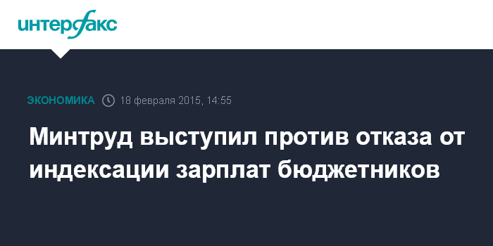 Москва. 18 февраля. INTERFAX.RU – Минтруд России не поддерживает идею отказа от индексации зарплат бюджетников и социальных выплат в текущем году.