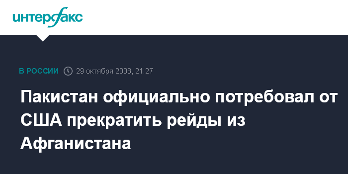 Москва. 29 октября. NTERFAX.RU - МИД Пакистана в среду вызвал американского посла Энн Паттерсон и передал ей требование немедленно прекратить военные операции на пакистанской территории, сообщает британская газета Times.