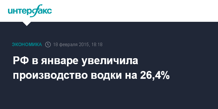 Москва. 18 февраля. INTERFAX.RU - Россия в январе этого года существенно увеличила производство водки и вина. Как сообщил Росстат в среду, водочные предприятий произвели 2,9 млн декалитров (дал) продукции, что на 26,4% больше, чем в январе прошлого года, винодельческие - 1,7 млн дал (на 20,7% больше).