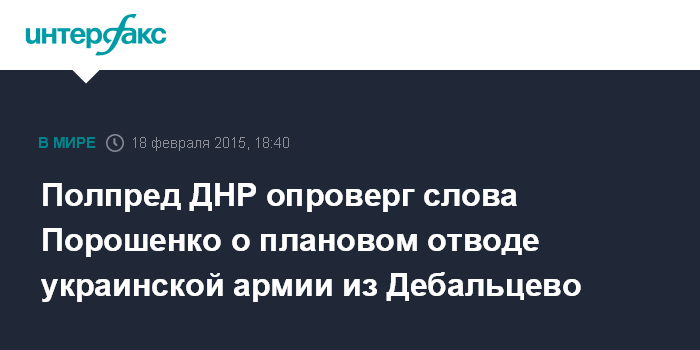 Москва. 18 февраля. INTERFAX.RU - Полпред самопровозглашенной Донецкой народной республики Денис Пушилин опроверг заявление президента Украины Петра Порошенко о плановом отводе подразделений украинской армии из Дебальцево.