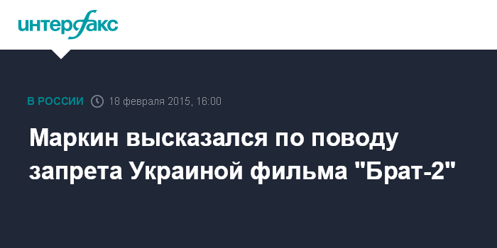 Москва. 18 февраля. INTERFAX.RU - Официальный представитель СКР Владимир Маркин с иронией отреагировал на запрет украинских властей проката на территории страны трех российского кинолент, в том числе фильма "Брат-2".