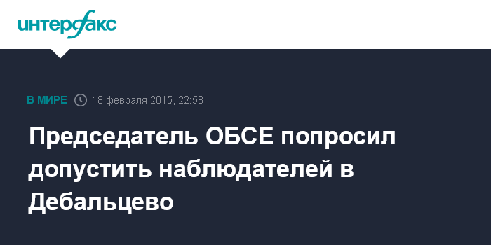 Москва. 18 февраля. INTERFAX.RU - Действующие на востоке Украины ополченцы должны согласиться предоставить доступ в город Дебальцево наблюдателям ОБСЕ, заявил в среду глава МИД Сербии Ивица Дачич, чья страна является председателем этой организации.