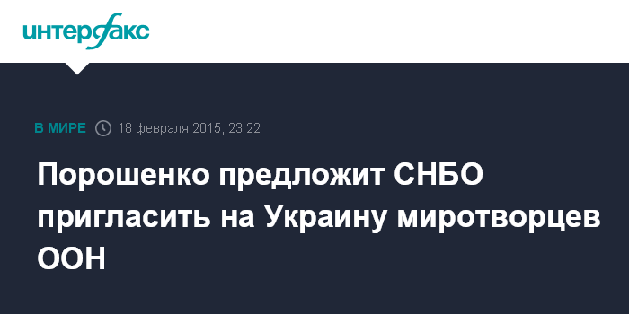 Москва. 18 февраля. INTERFAX.RU - Президент Украины Петр Порошенко предложит Совету национальной безопасности и обороны обсудить вопрос приглашения в страну миротворческой миссии ООН.