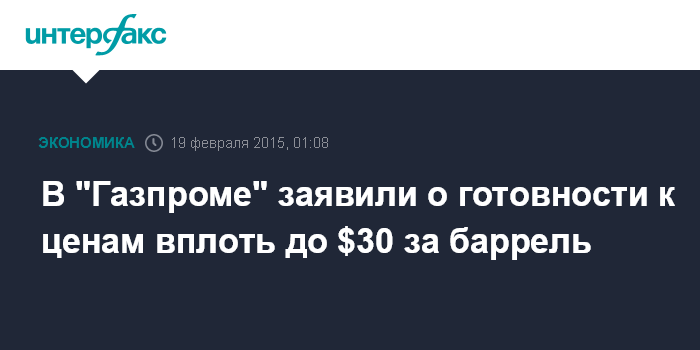 В "Газпроме" заявили о готовности к ценам вплоть до $30 за баррель
