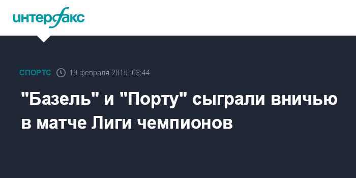 Москва. 19 февраля. INTERFAX.RU - Швейцарский "Базель" и португальский "Порту" завершили вничью первый матч 1/8 финала Лиги чемпионов УЕФА.