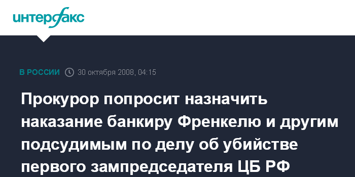 Прокурор попросит назначить наказание банкиру Френкелю и другим подсудимым по делу об убийстве первого зампредседателя ЦБ РФ