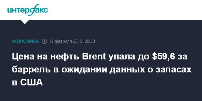 Цена на нефть Brent упала до $59,6 за баррель в ожидании данных о запасах в США