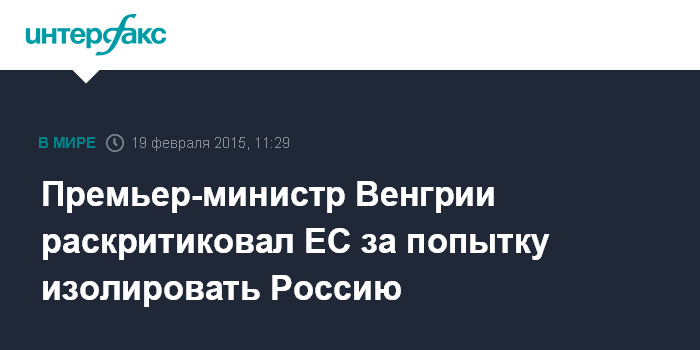 Москва. 19 февраля. INTERFAX.RU - Глава правительства Венгрии Виктор Орбан подверг критике некоторые страны-члены Евросоюза, которые стремятся изолировать Россию из-за ее политики в отношении Украины, сообщают в четверг венгерские СМИ.