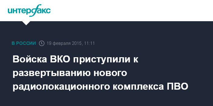 Москва. 19 февраля. INTERFAX.RU - Специалисты Войск воздушно-космической обороны (ВКО) приступили к развертыванию радиолокационного комплекса нового поколения "Небо-М", сообщил в четверг представитель управления пресс-службы и информации Минобороны по Войскам ВКО полковник Алексей Золотухин.