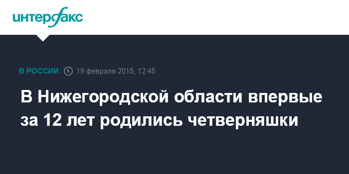 Москва. 19 февраля. INTERFAX.RU - Девять специалистов принимали роды у жительницы города Урень Нижегородской области, которая стала матерью сразу четверых детей.