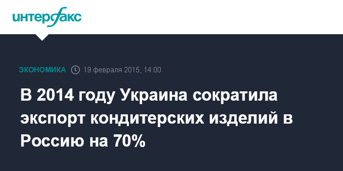 "Традиционным зарубежным рынком сбыта отечественных сладостей была Россия. Туда поступало около 45% ежегодного украинского экспорта кондитерских изделий. После российского запрета на ввоз украинской кондитерской продукции в сентябре 2014 года наш экспорт туда упал на 67% по сравнению с 2013", - сообщил президент ассоциации производителей кондитерских изделий "Укркондпром" Александр Балдынюк.