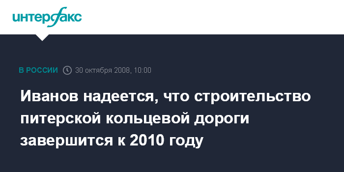 Иванов надеется, что строительство питерской кольцевой дороги завершится к 2010 году