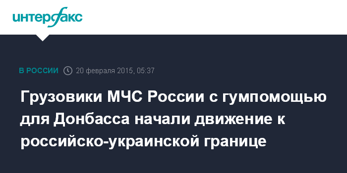 Москва. 20 февраля. INTERFAX.RU - Колонна МЧС России с гуманитарной помощью отправилась в Донбасс, сообщил замначальника Национального центра управления в кризисных ситуациях МЧС Олег Воронов.