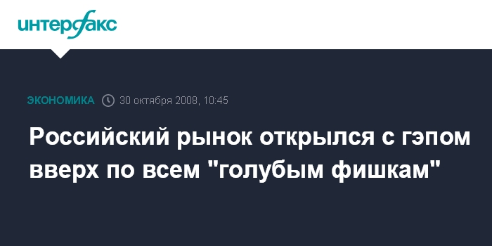 Москва. 30 октября. INTERFAX.RU - Российский рынок акций открылся с гэпом вверх по всему спектру blue chips на фоне позитивной динамики мировых фондовых площадок и нефти, индекс ММВБ за минуту торгов прибавил более 5%.