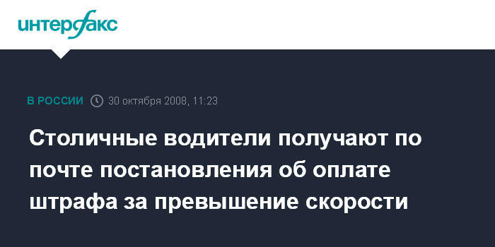 Столичные водители получают по почте постановления об оплате штрафа за превышение скорости