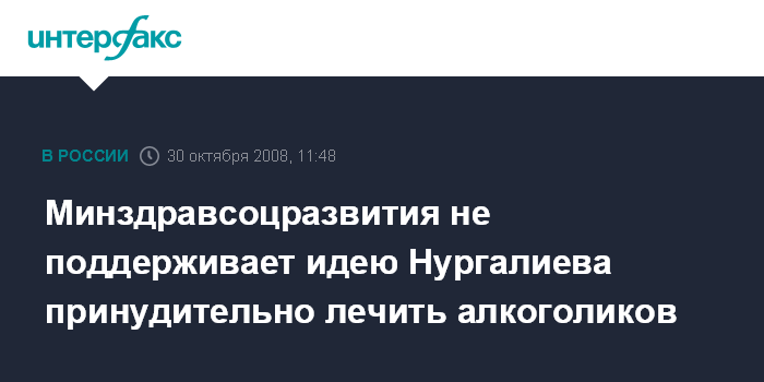 Минздравсоцразвития не поддерживает идею Нургалиева принудительно лечить алкоголиков