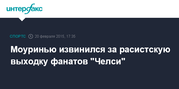 Москва. 20 февраля. INTERFAX.RU - Главный тренер лондонского футбольного клуба "Челси" Жозе Моуринью выразил возмущение поведением болельщиков команды, допустивших расистское оскорбление в адрес темнокожего мужчины в Париже.