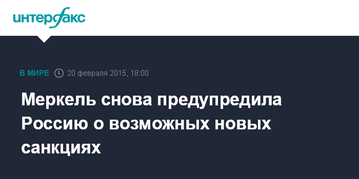 Москва. 20 февраля. INTERFAX.RU - Канцлер Германии Ангела Меркель допускает возможность принятия очередных ограничительных мер против России, сообщает в пятницу немецкая газета Die Zeit.