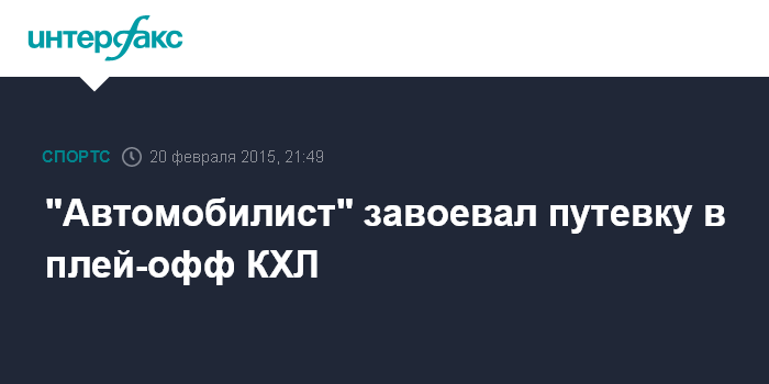 Москва. 20 февраля. INTERFAX.RU - Хоккеисты екатеринбургского клуба "Автомобилист" стали обладателями путевки в плей-офф КХЛ сезона-2014/15.