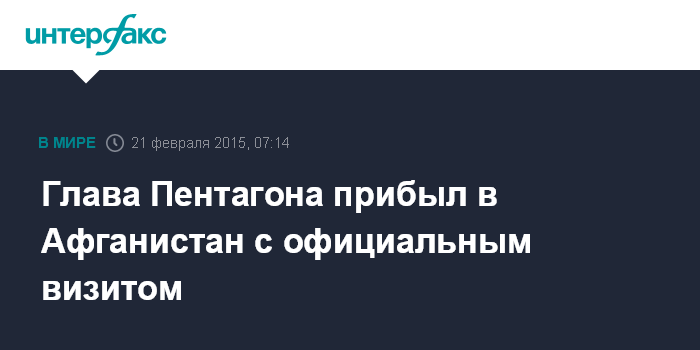 Москва. 21 февраля. INTERFAX.RU - Министр обороны США Эштон Картер прибыл в субботу в Афганистан с первым зарубежным визитом после назначения на пост главы Пентагона. Об этом сообщает AP.