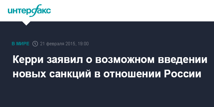 Москва. 21 февраля. INTERFAX.RU - Вашингтон и его союзники обсуждают возможность принятия дополнительных ограничительных мер в отношении Москвы из-за ситуации на востоке Украины, сообщил в субботу госсекретарь Джон Керри на встрече со своим британским коллегой Филипом Хэммондом.
