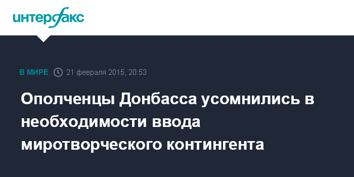 Москва. 21 февраля. INTERFAX.RU - Помощь миротворческих сил на юго-востоке Украины в реализации минских договоренностей не нужна, считают в руководстве самопровозглашенных Луганской и Донецкой народных республик.