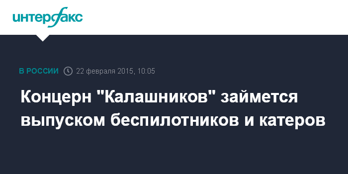 Москва. 22 февраля. INTERFAX.RU - Концерн "Калашников" приобрел 51% акций предприятия "Рыбинские верфи" и 51% акций ижевской фирмы Zala, занимающейся выпуском беспилотников, сообщил журналистам в воскресенье генеральный директор концерна Алексей Криворучко.